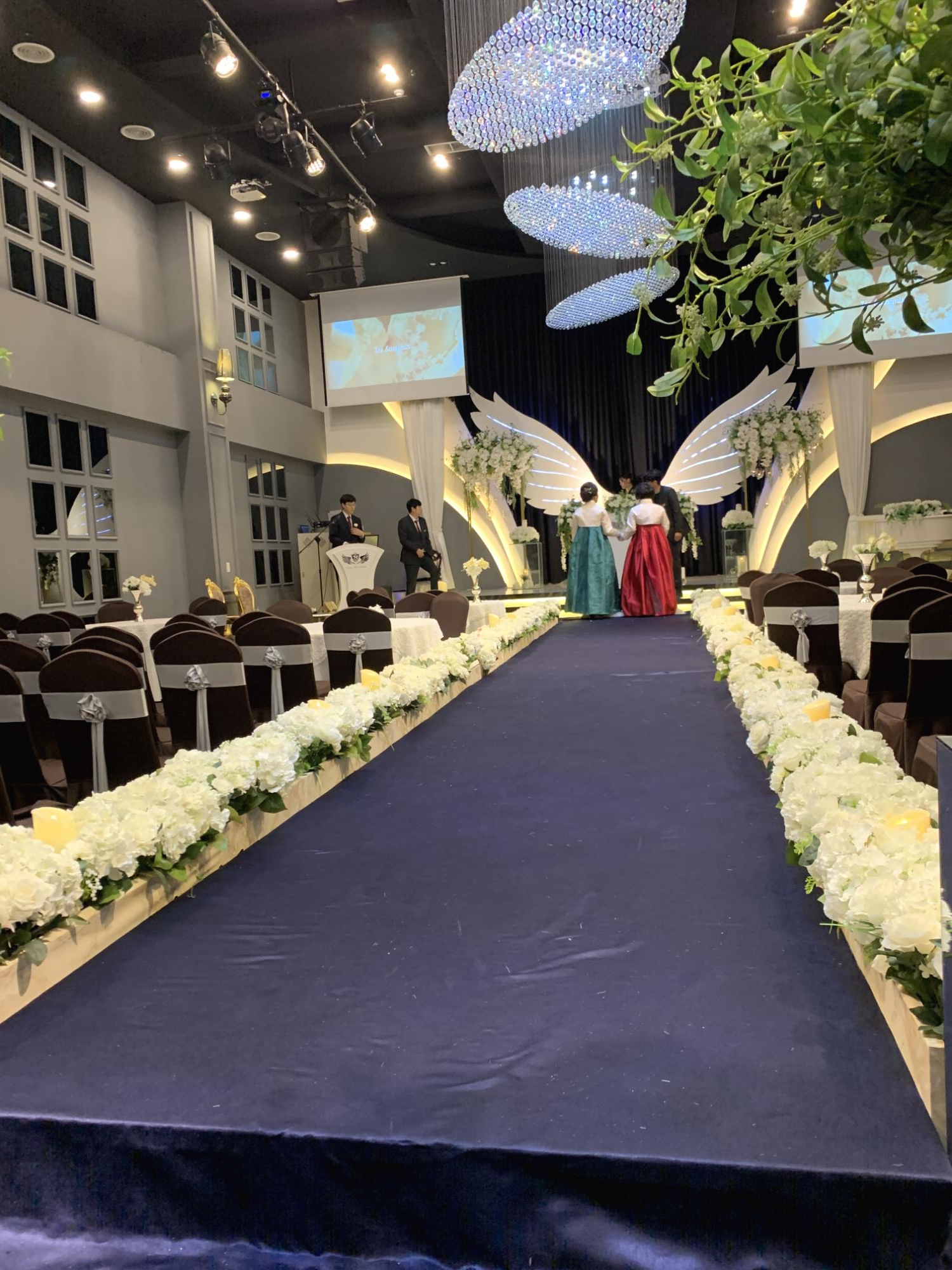 버진로드 역시 짧다! 예식 홀 자체가 작고 아담해서, 버진로드도 짧고 금방끝나는 길이라 걱정했는데, 신랑이 입장하면서 한걸음마다 꾸벅 인사를 하면서 멋지게 들어가더라 ㅎㅎ